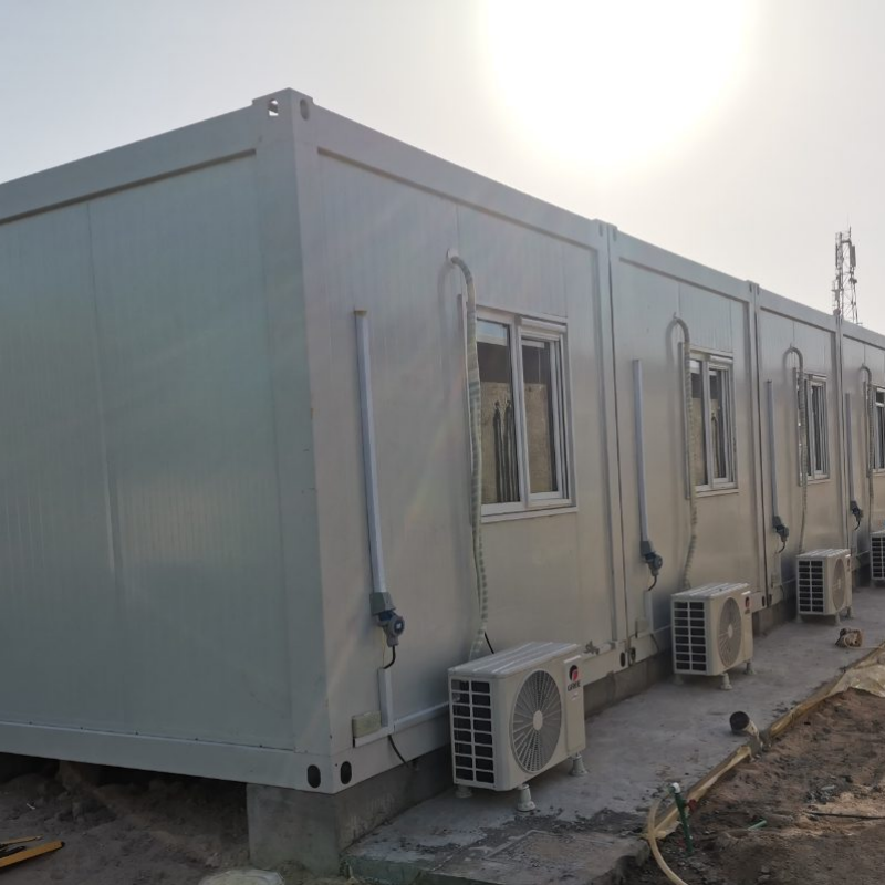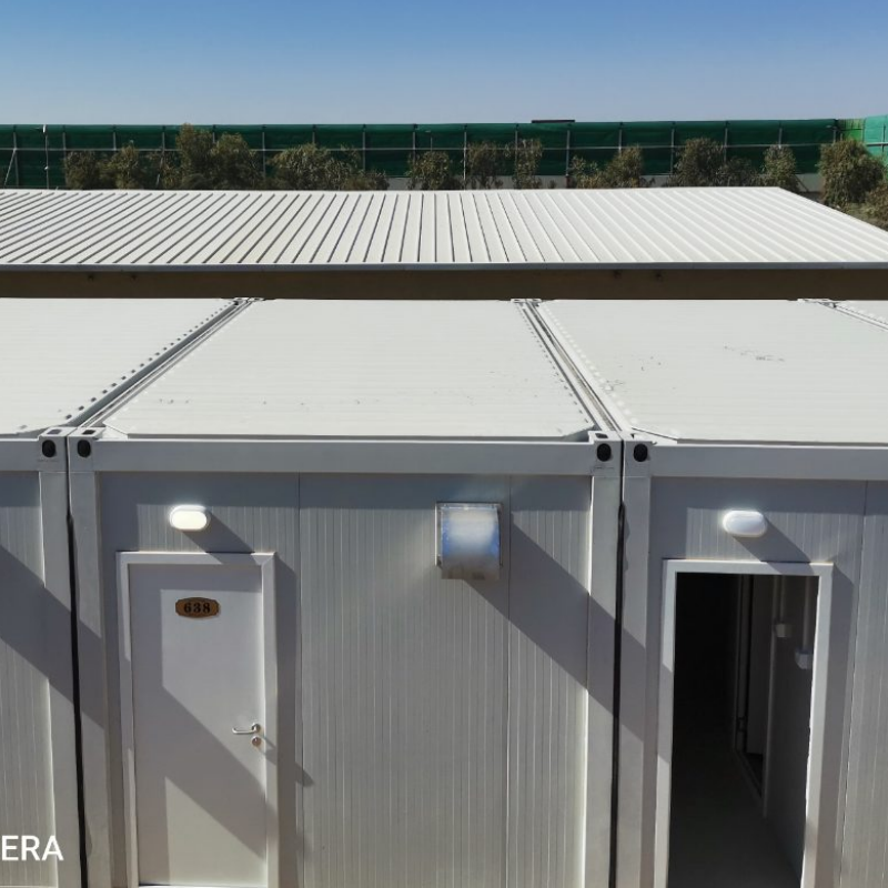 Le toit soudé de la maison conteneur est une solution innovante de toiture modulaire conçue spécifiquement pour ce type de climat. Ce toit soudé améliore l’étanchéité de la maison, réduit le bruit du vent et du sable extérieurs, et crée un environnement intérieur sûr et confortable.